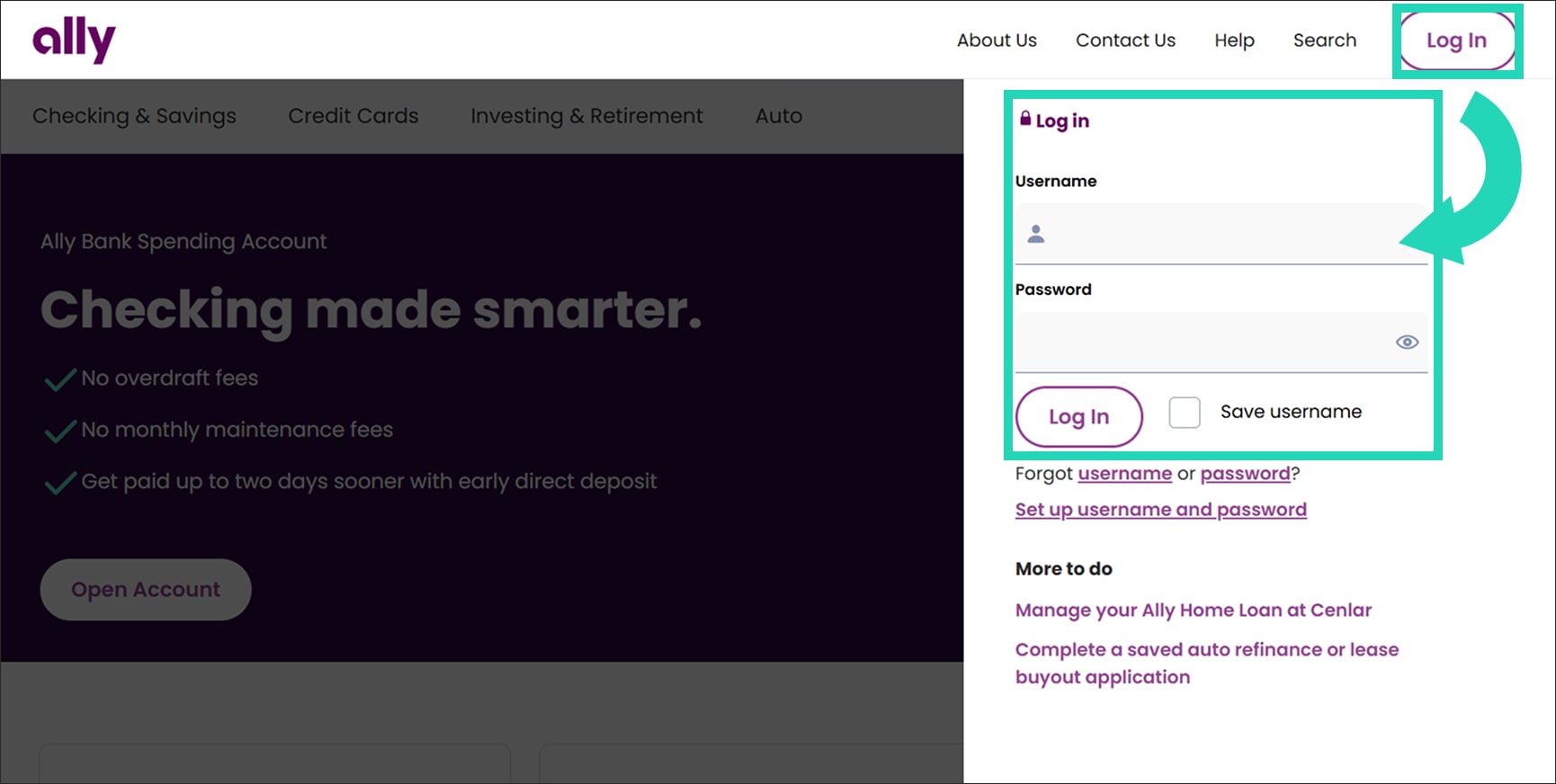 Enroll in online services if you haven’t already, then log in to your account on ally.com.