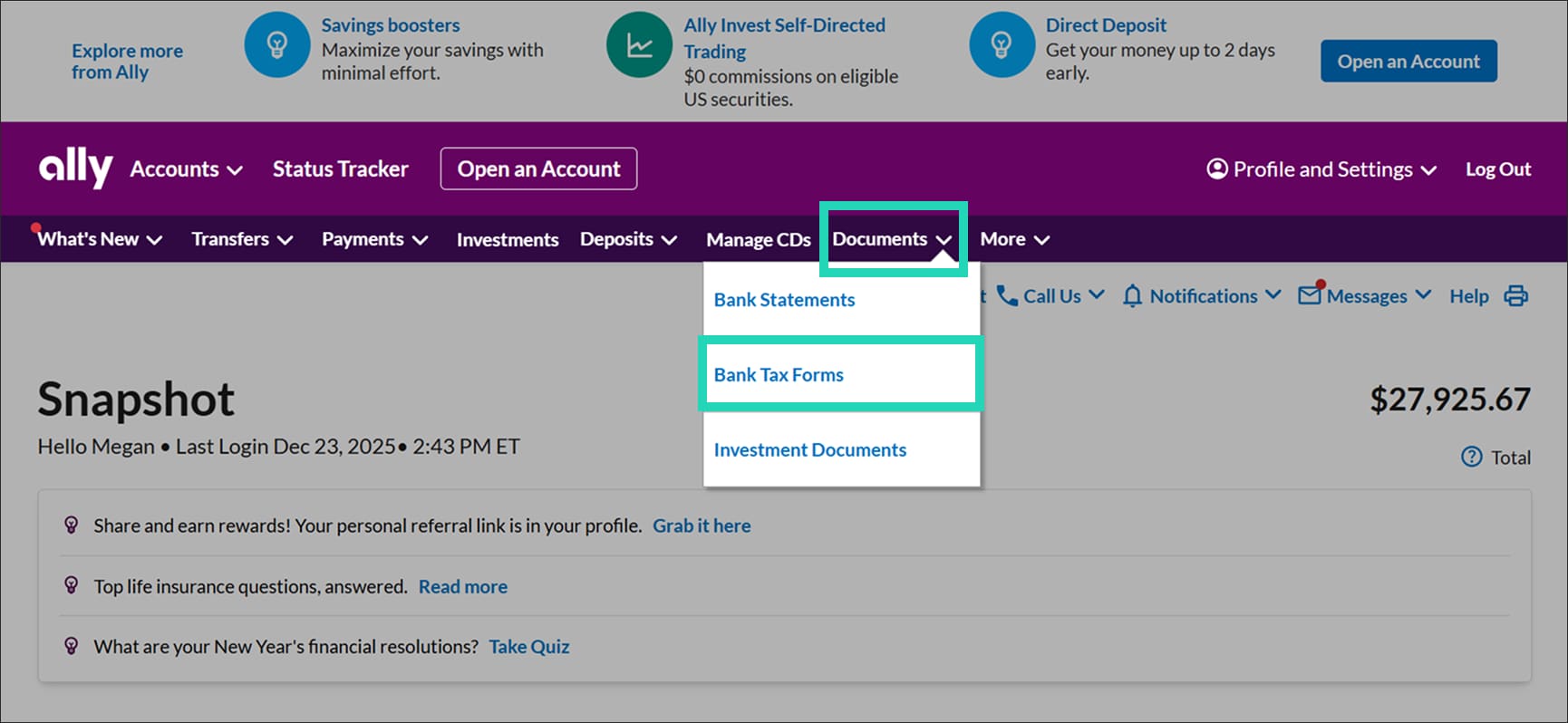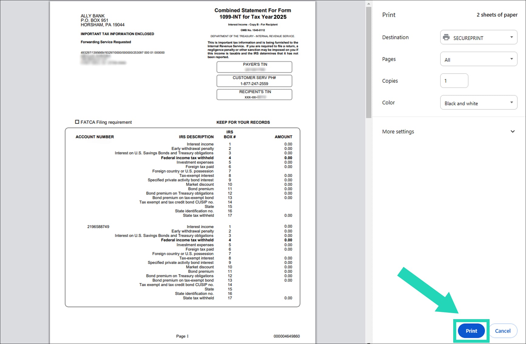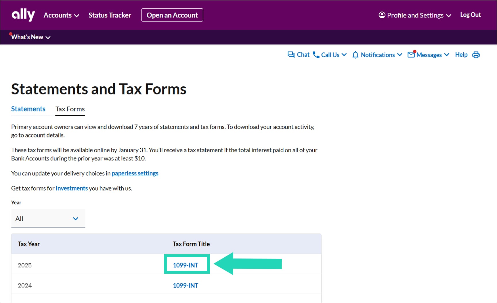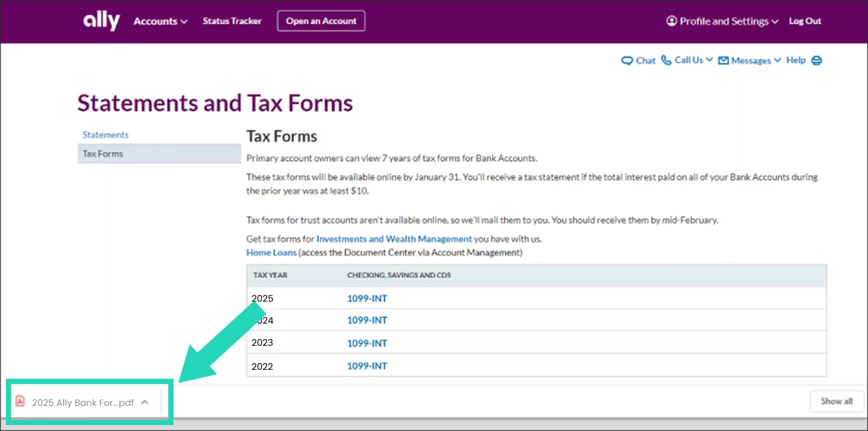 How to print your Ally Bank tax forms.